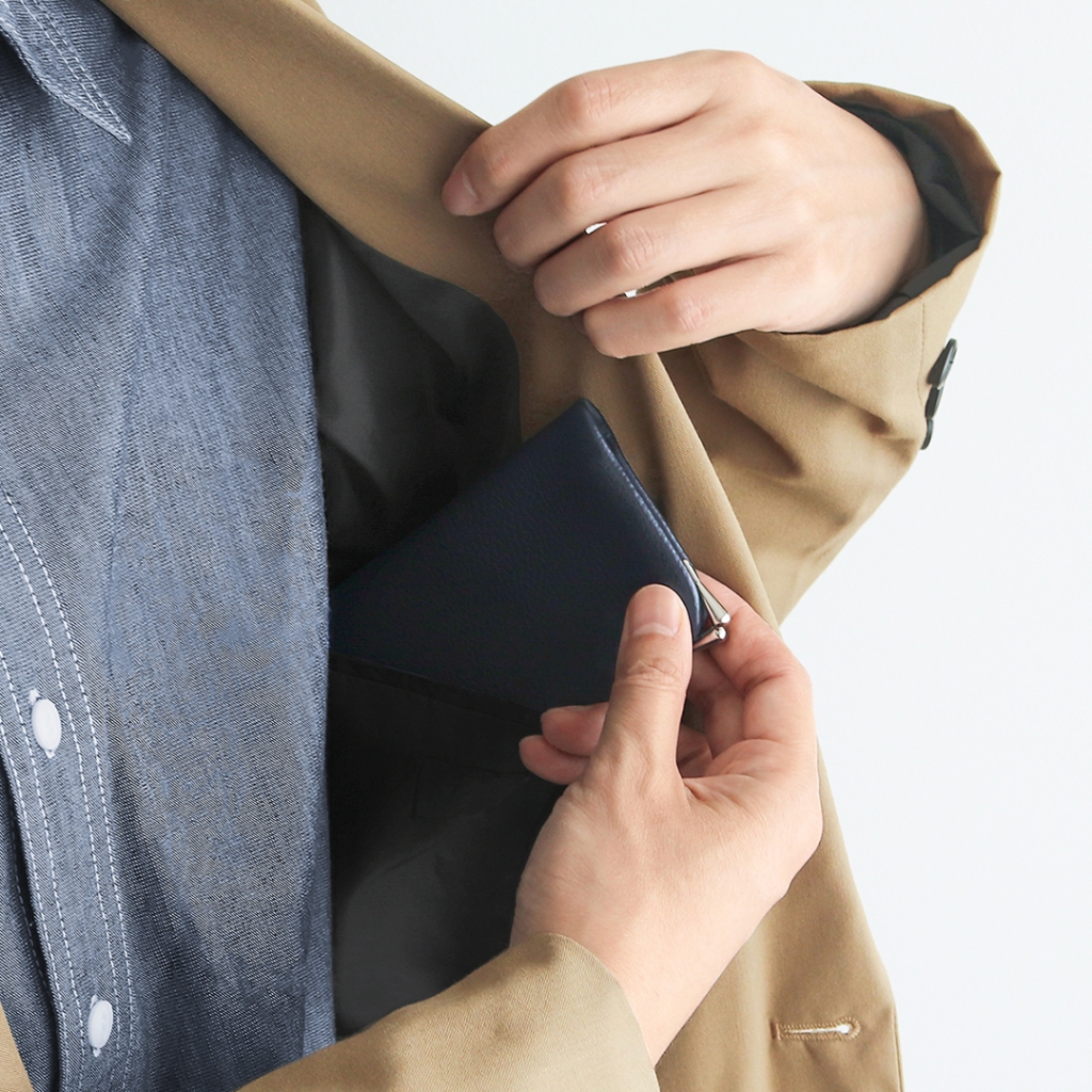 ジャケットやバッグの内ポケットに出し入れするときも引っかかりにくく、よりスタイリッシュな印象に。