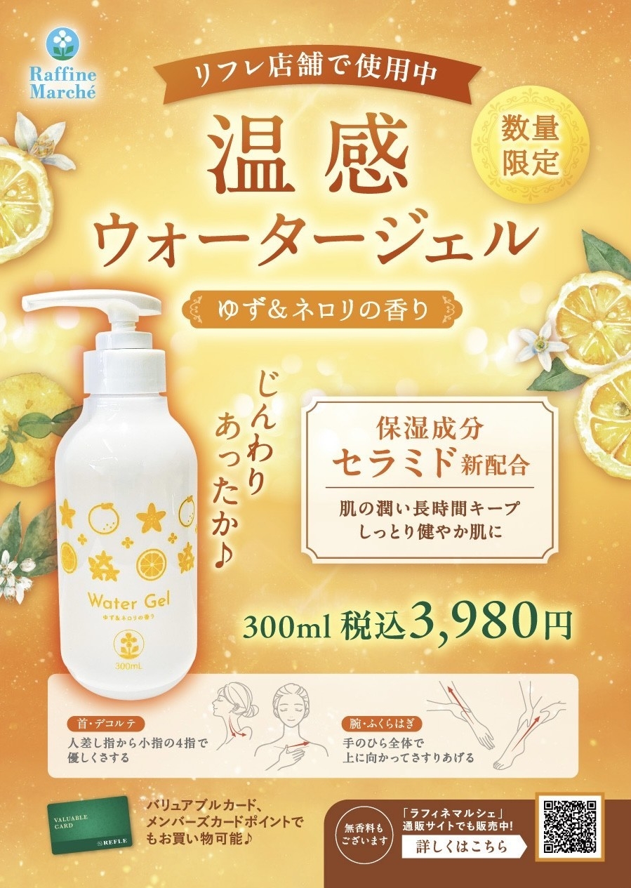 温感ウォータージェル(ゆず&ネロリの香り)300ml¥3,980円(税込)