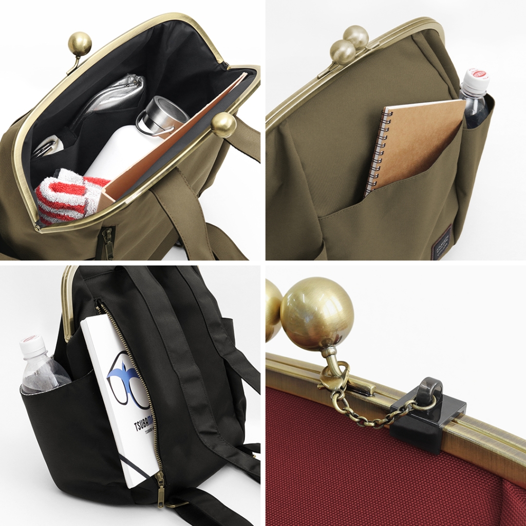 荷物の入れ過ぎや衝撃でがま口が勝手に開いてしまうのを防いでくれる