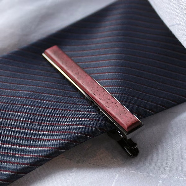 無機質な金属製ネクタイピンとはひと味違う、本物の木を組み合わせたおしゃれでシックなネクタイピン。