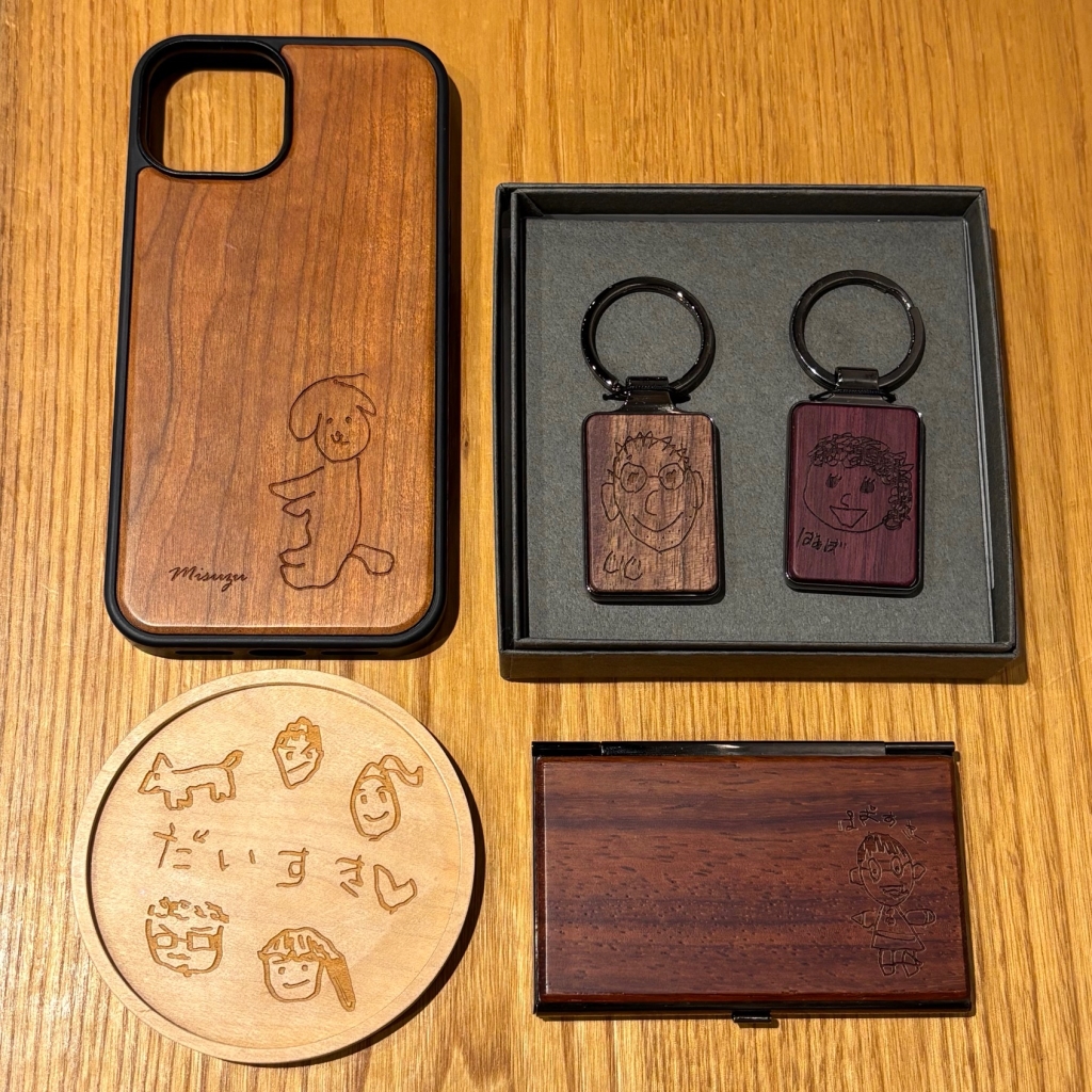 当店では、そんな大切な作品を、あたたかみのある木製品にやさしく丁寧に刻印いたします。