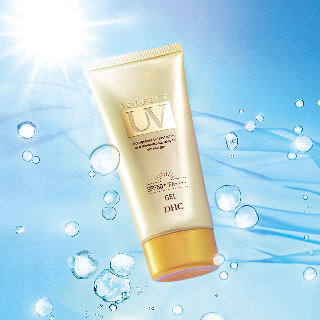 みずみずしいジェルが、すーっと伸び広がる、べたつかない日焼け止め!