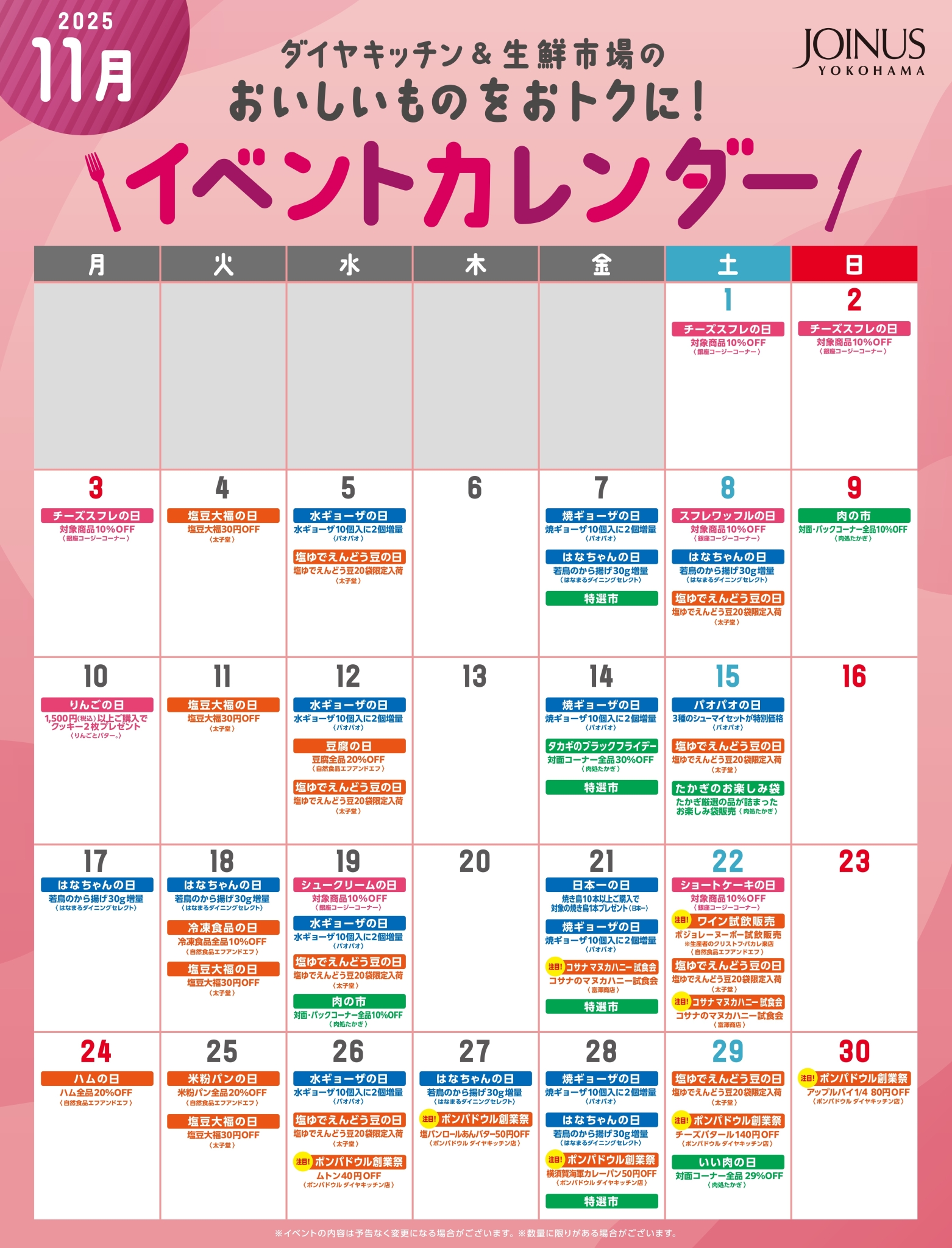 ダイヤキッチン・生鮮市場 イベントカレンダー