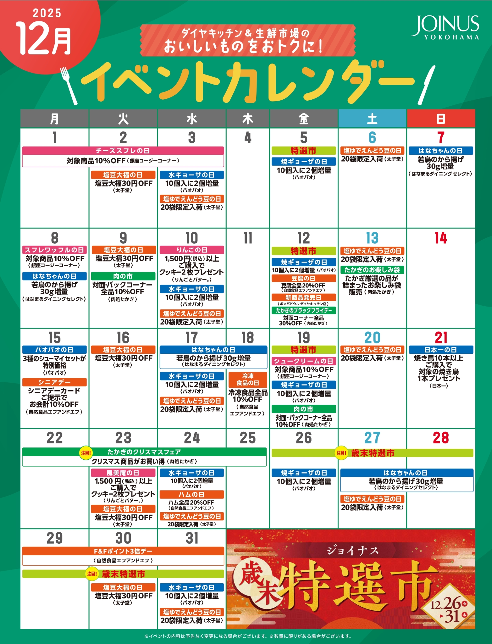 ダイヤキッチン・生鮮市場 イベントカレンダー【12月】