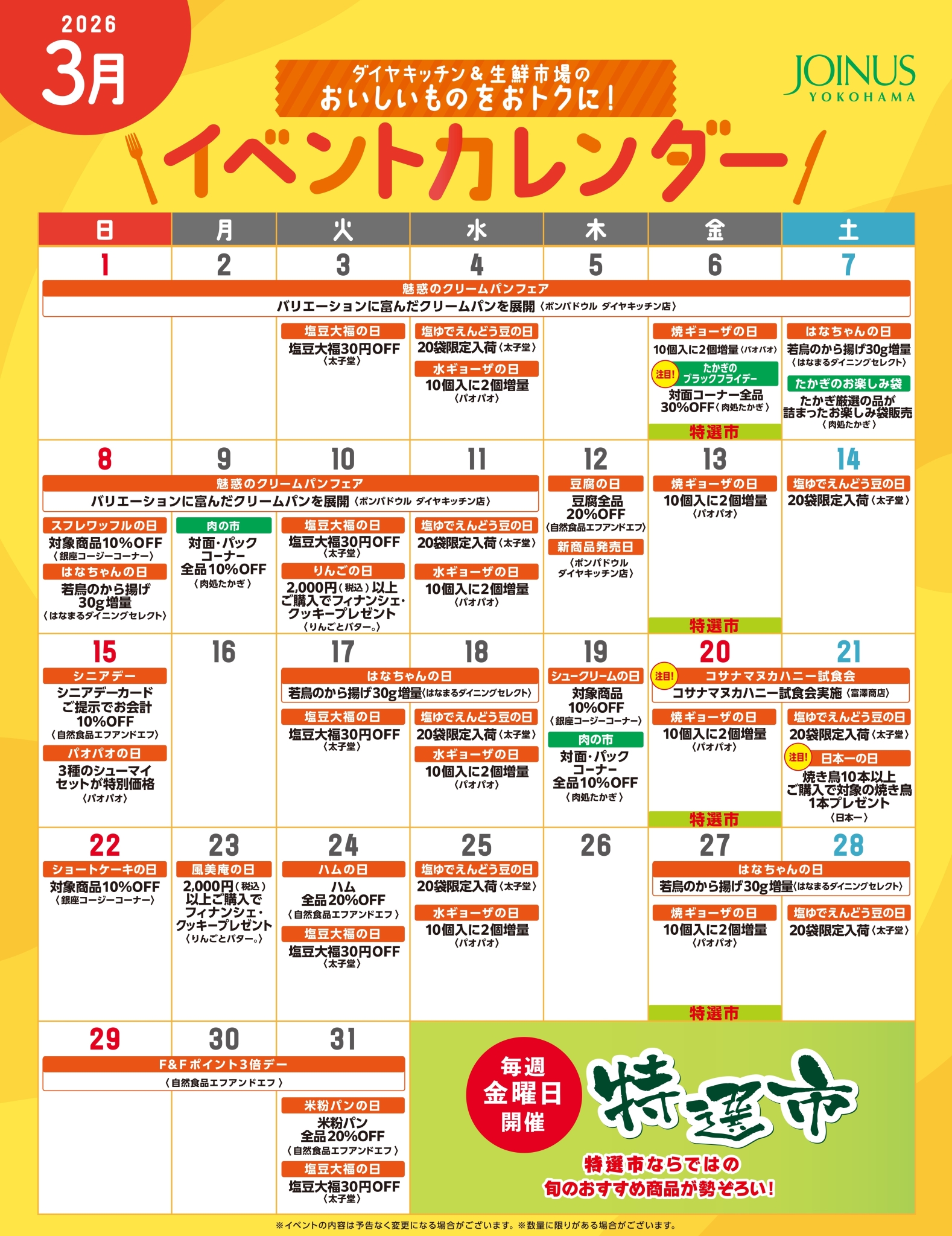 ダイヤキッチン・生鮮市場 イベントカレンダー【3月】