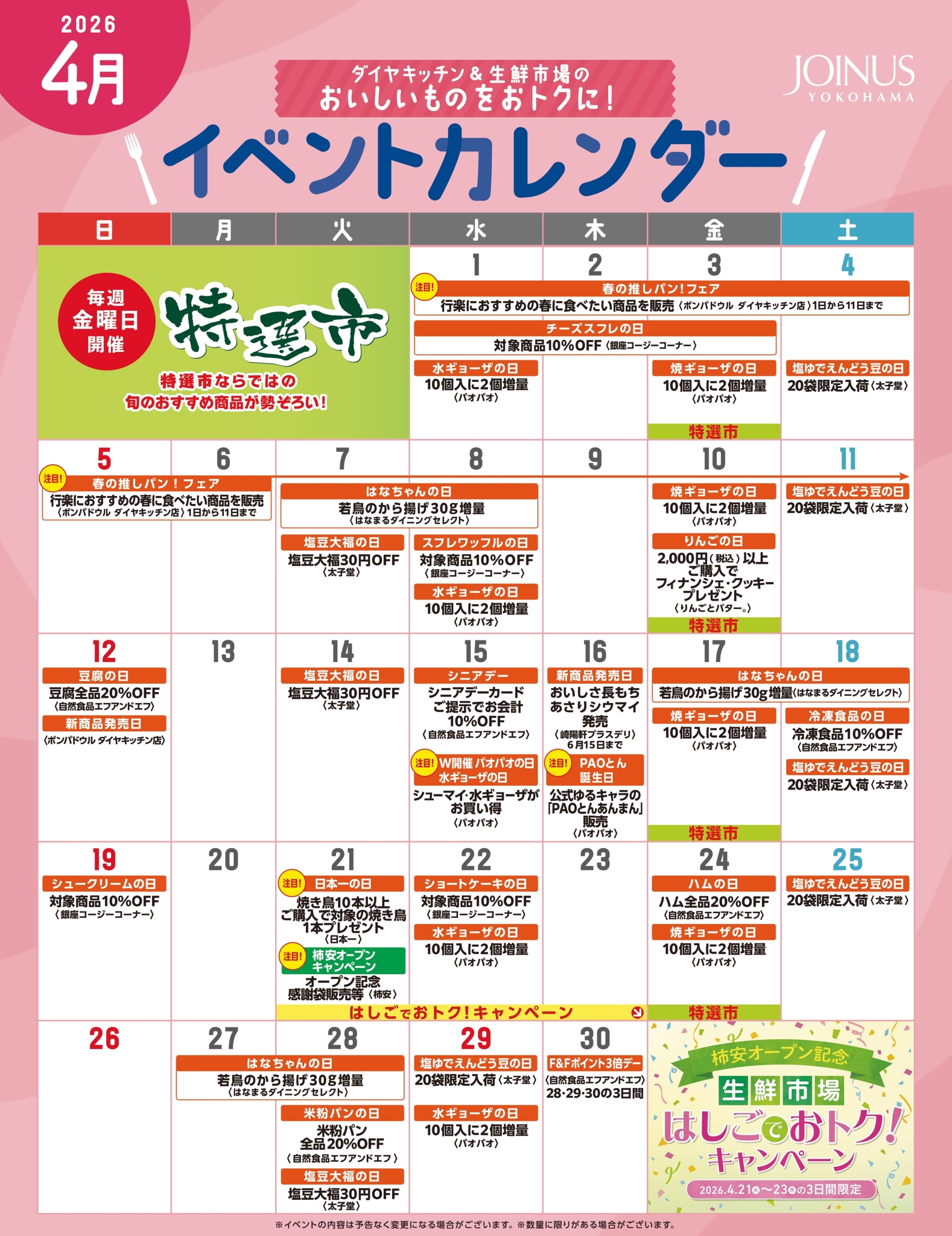 ダイヤキッチン・生鮮市場 イベントカレンダー【4月】
