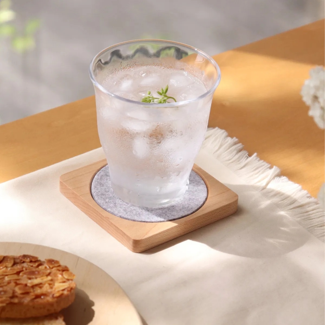 無垢材メープル・ウォールナットに、フェルトを組み合わせた木製コースター。