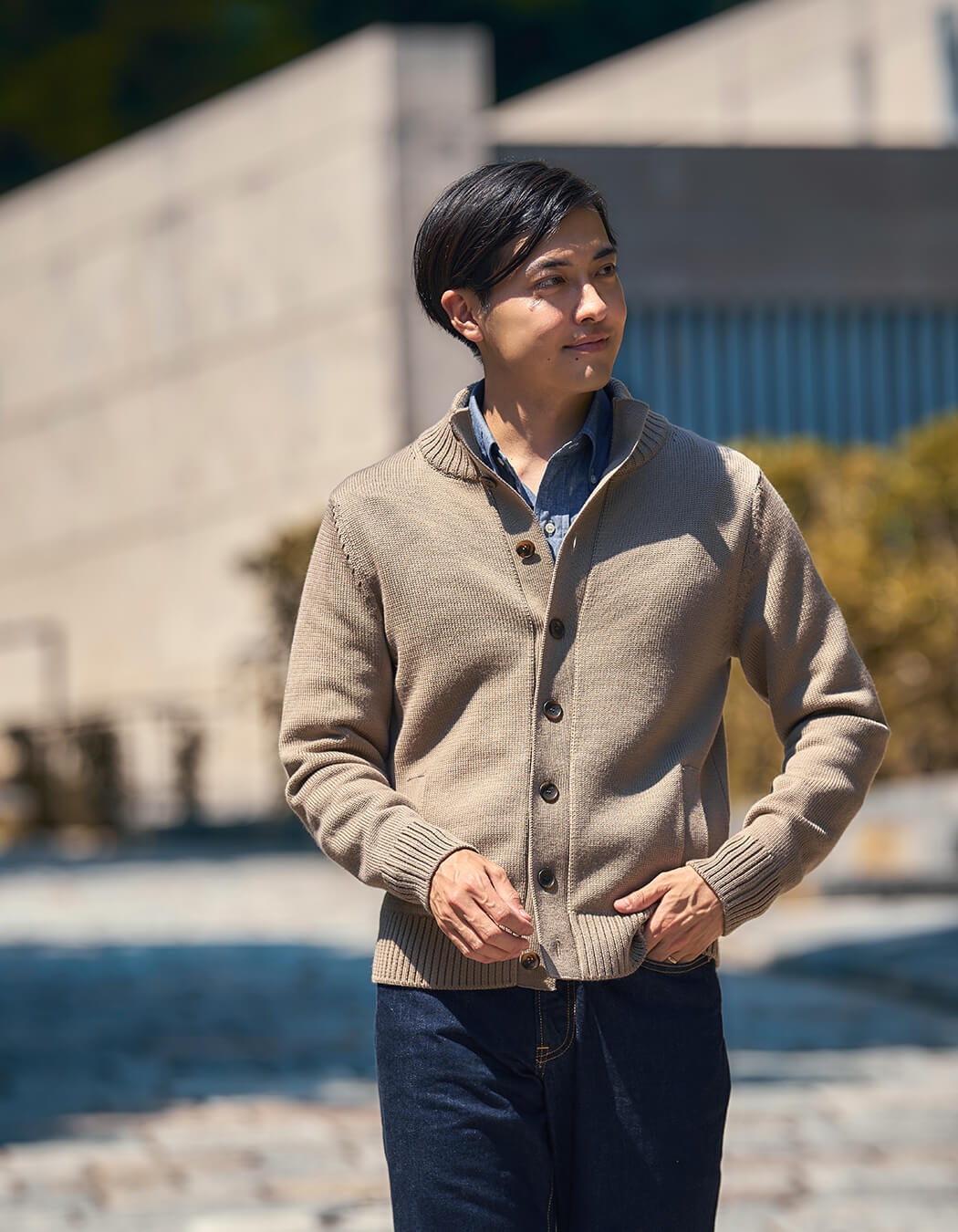 エクストラファインメリノウールを使用した高品質なニット糸で編み上げた「スタンドカラーカーディガン」が今年も入荷いたしました!