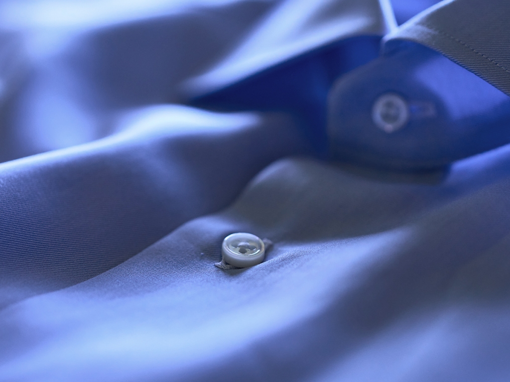 シルクのような肌触りのピマコットンを原料に、髪の毛よりもずっと細い200番手の糸で織られた生地。その光沢と肌触りは、通常のシャツと比べても別格です。