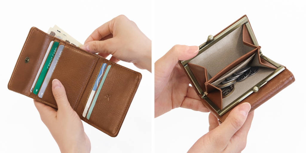 お札やレシートも入れられます。小銭が入れられる子がま口は大きく開いて中が見えやすくなっています。