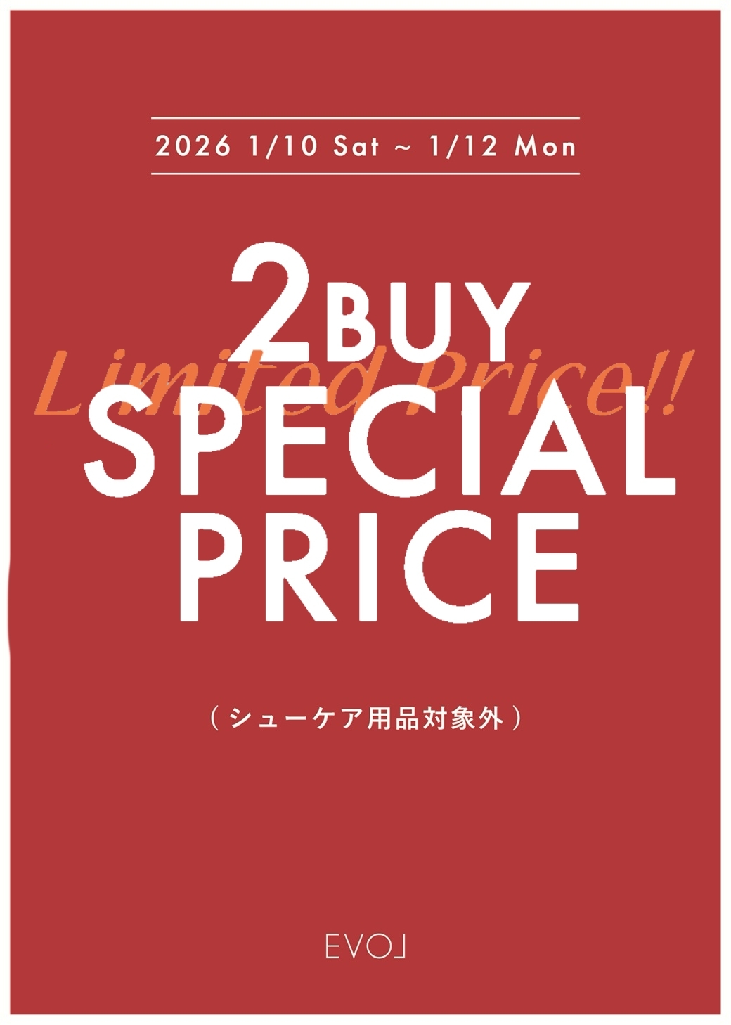 1/10(土)~1/12(月)の3日間限定で2足でSPECIAL PRICEを開催いたします!