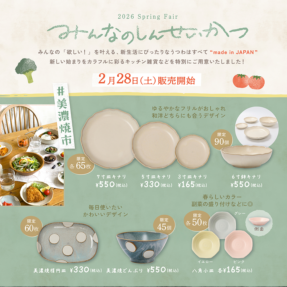 そんな美濃焼から、和洋どちらのお料理にも合う、さまざまなデザインや色合い、質感の器を揃えました。