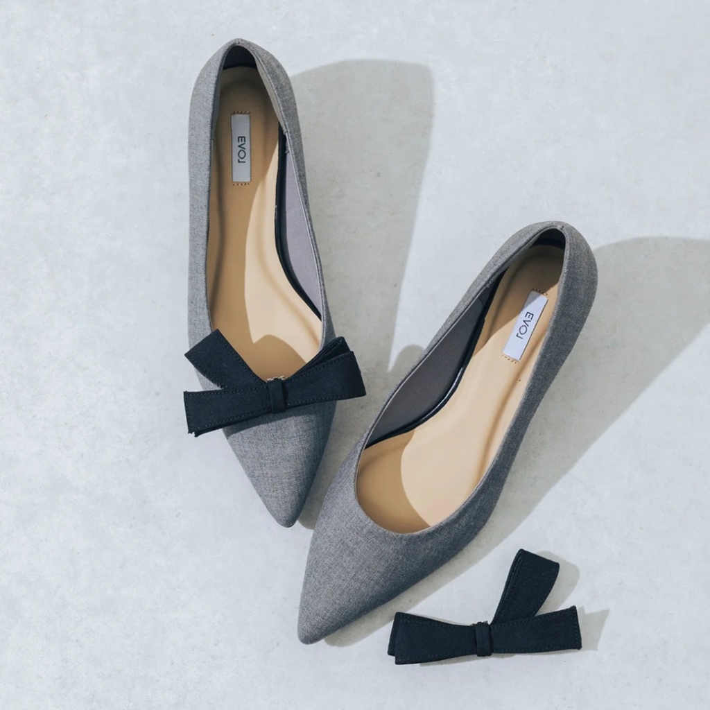 レディでクラシカルな雰囲気のパンプスは取り外し可能なリボン付きでお洋服の変化を楽しめます。