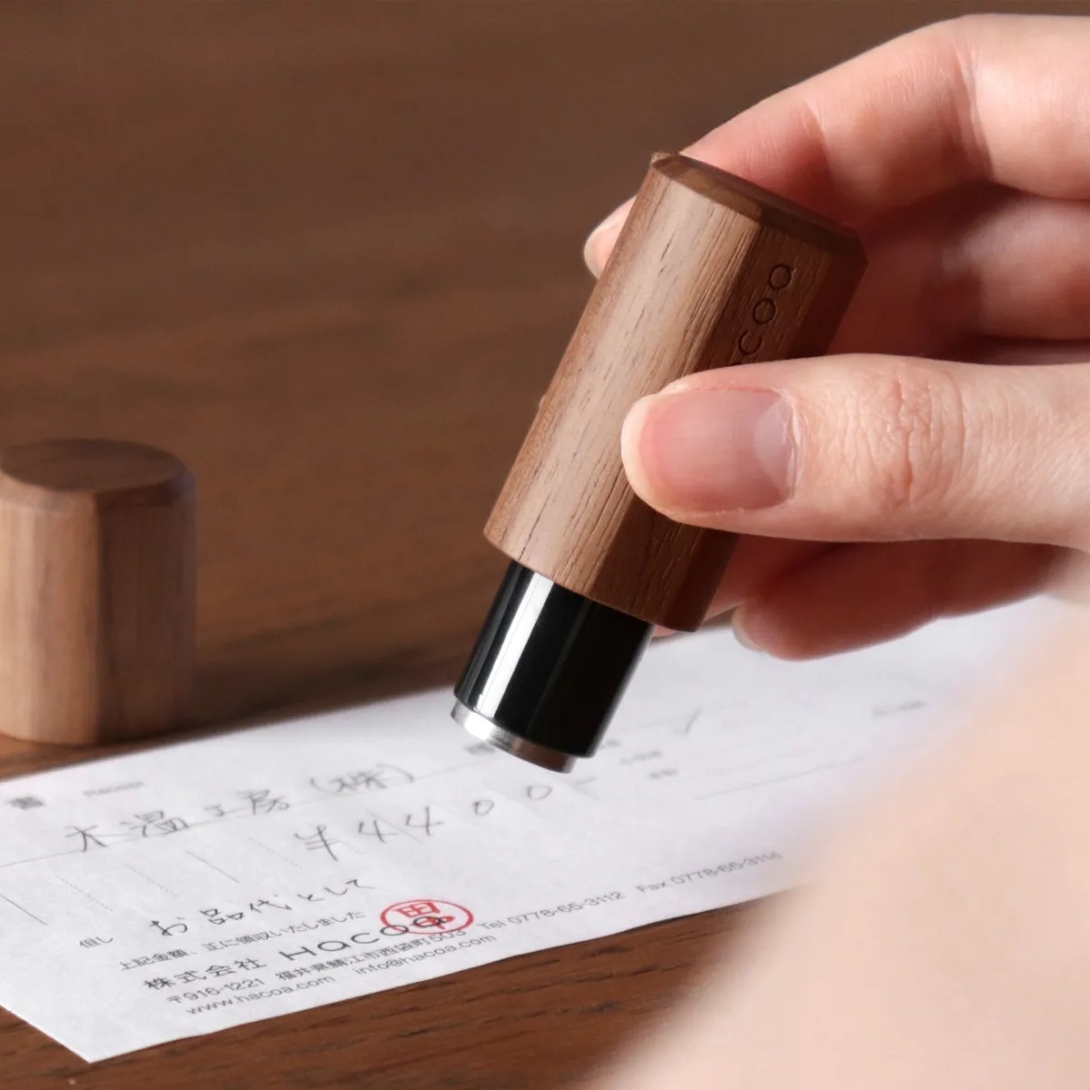 見慣れたネーム印を天然木に装着するだけで、手に取るたび心地良い、こだわりの道具へと仕立てます。