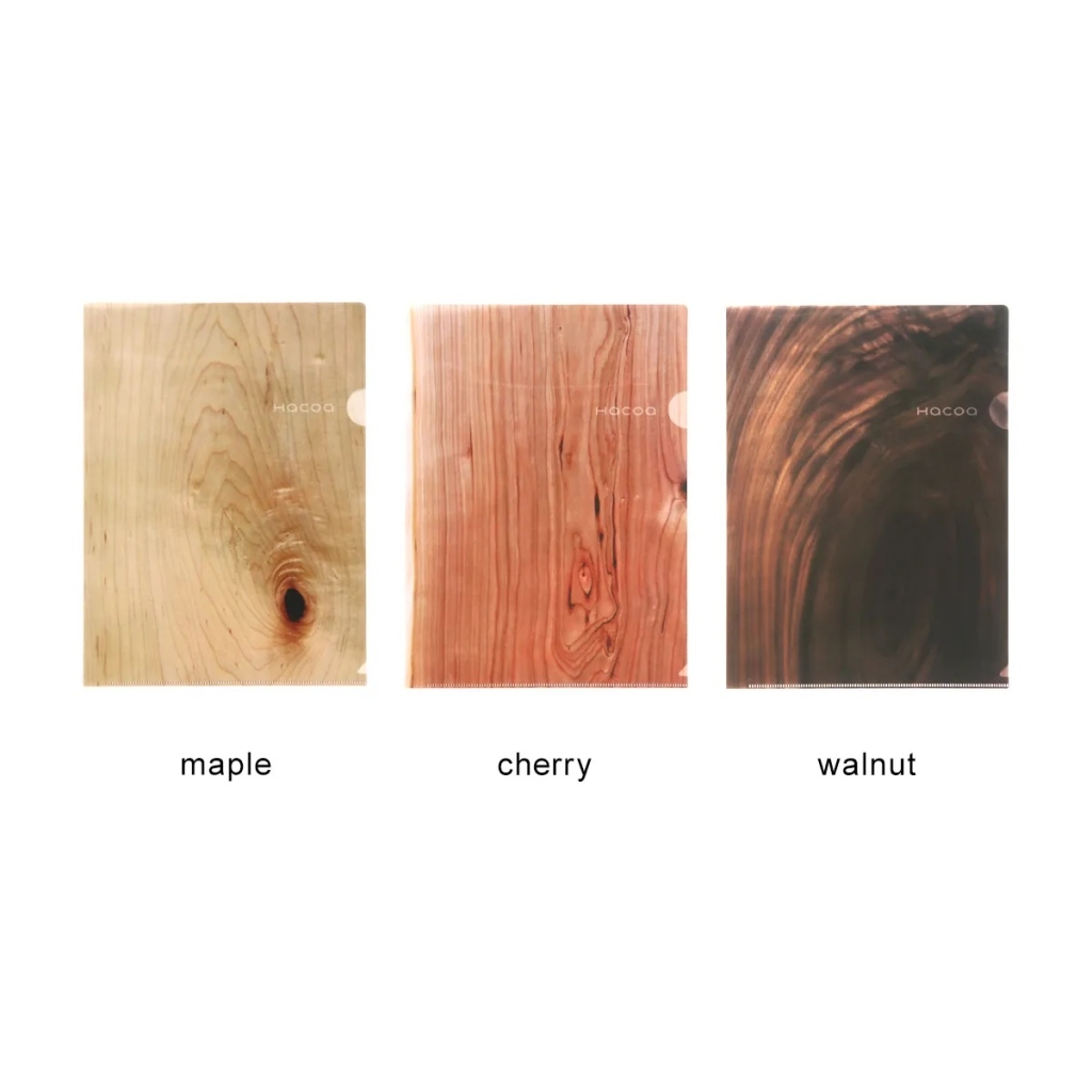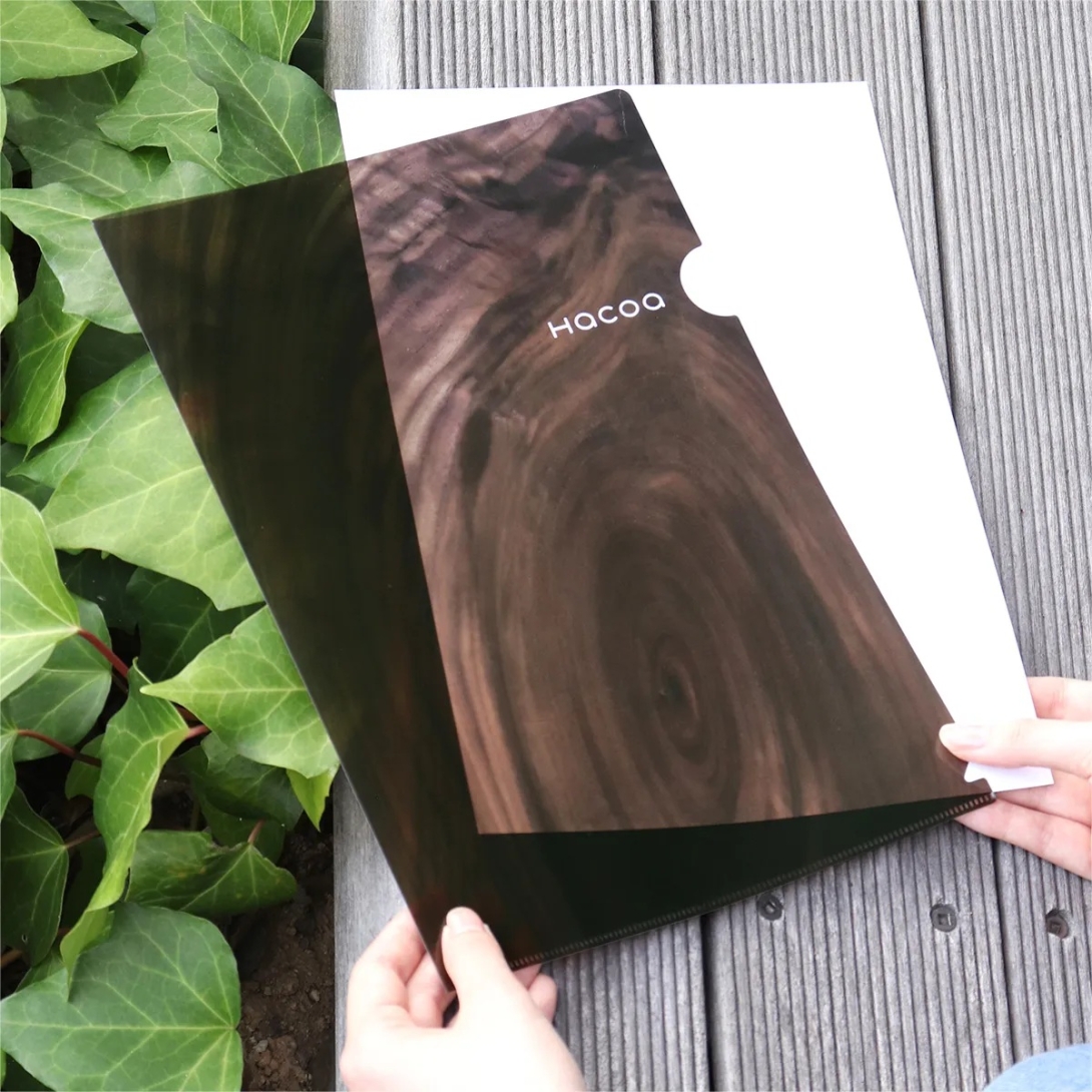 紙を入れると木目が浮かび上がる、A4サイズの「木目クリアファイル」。