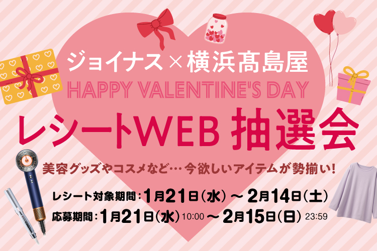 レシート応募で500名様に豪華賞品が当たる! ジョイナス×横浜高島屋 ハッピーバレンタイン レシートWEB抽選会