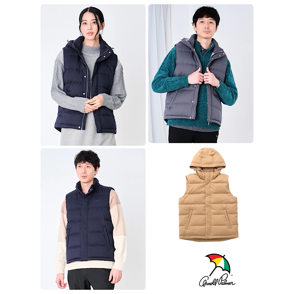 上品で暖かみのあるウールライク素材を使用したダウンベストのご紹介です。