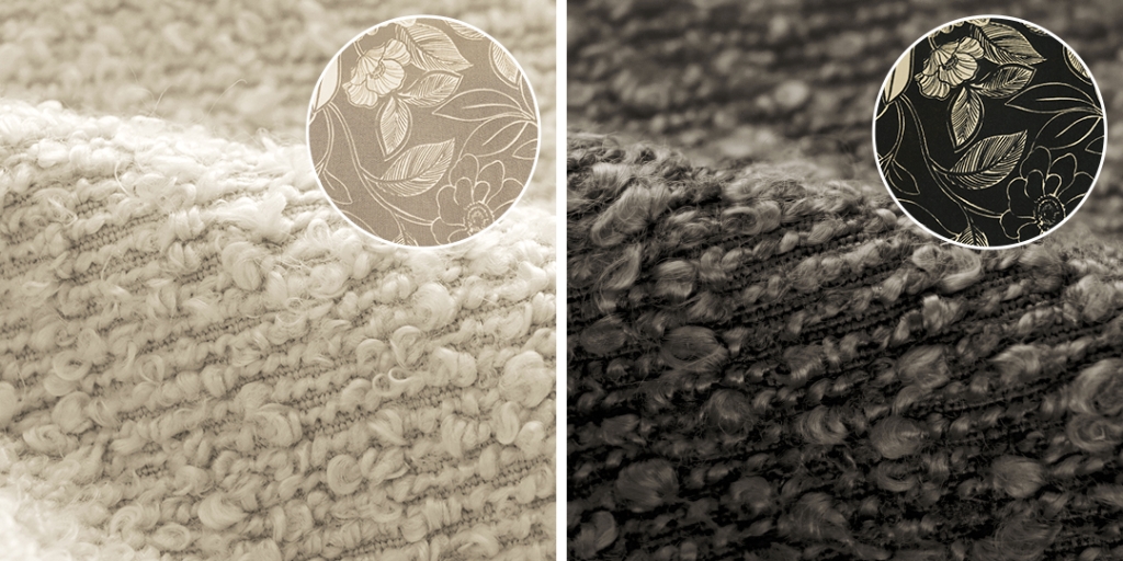 表面がくるくるとループ状になったブークレ生地を使用しており、