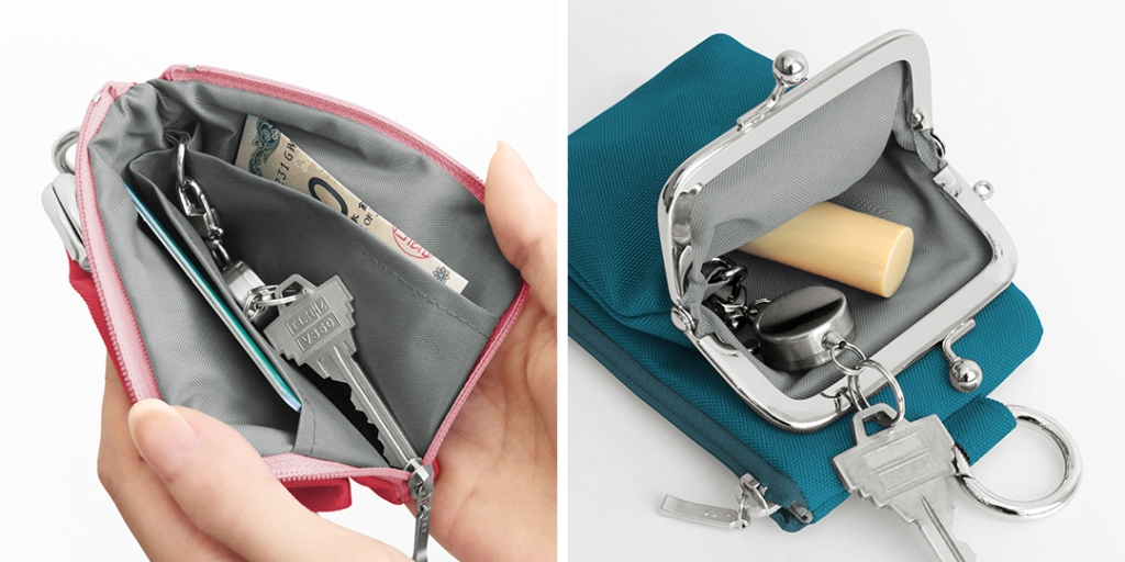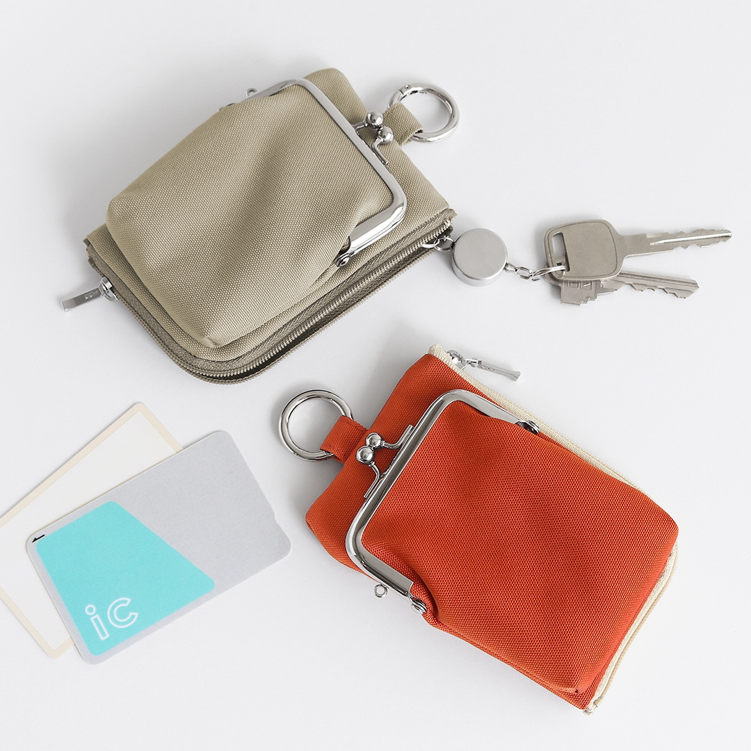 がま口収納もDカン付きで、鍵だけでなくリップなどの小物を入れるのにも便利です。