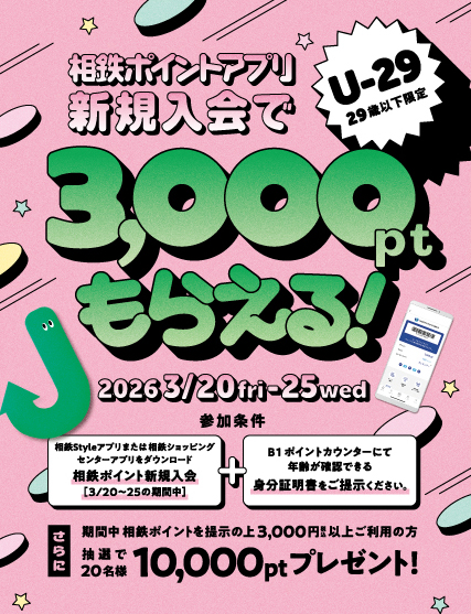 予告【3月20日(金)~3月25日(水)】29歳以下限定!相鉄ポイントアプリ新規入会キャンペーン!