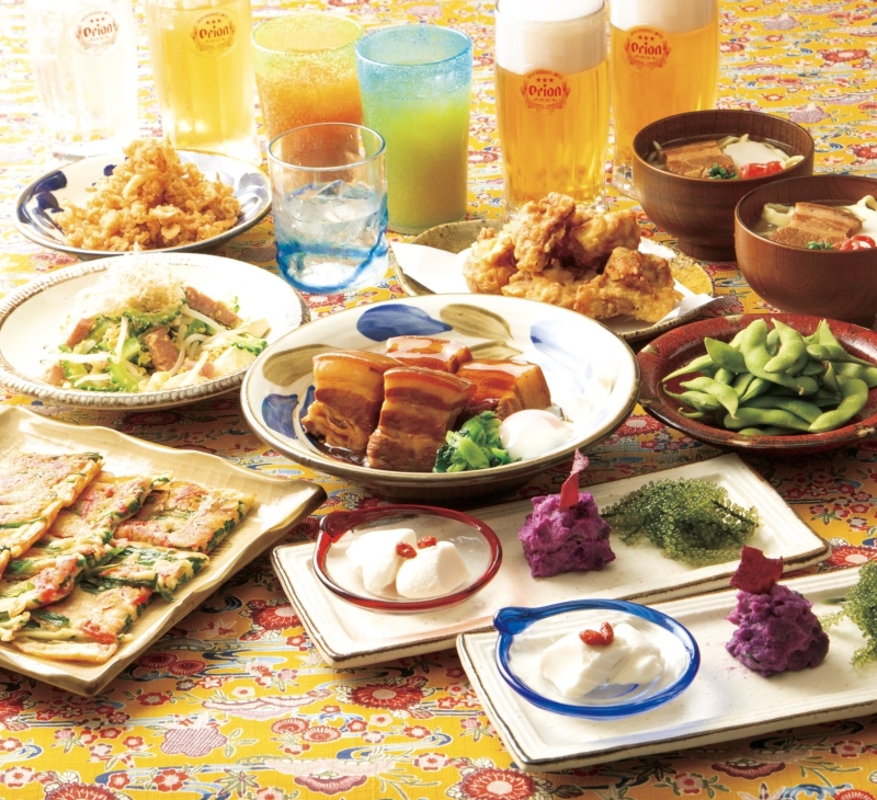 沖縄料理をつまみながら、泡盛を酌み交わす...