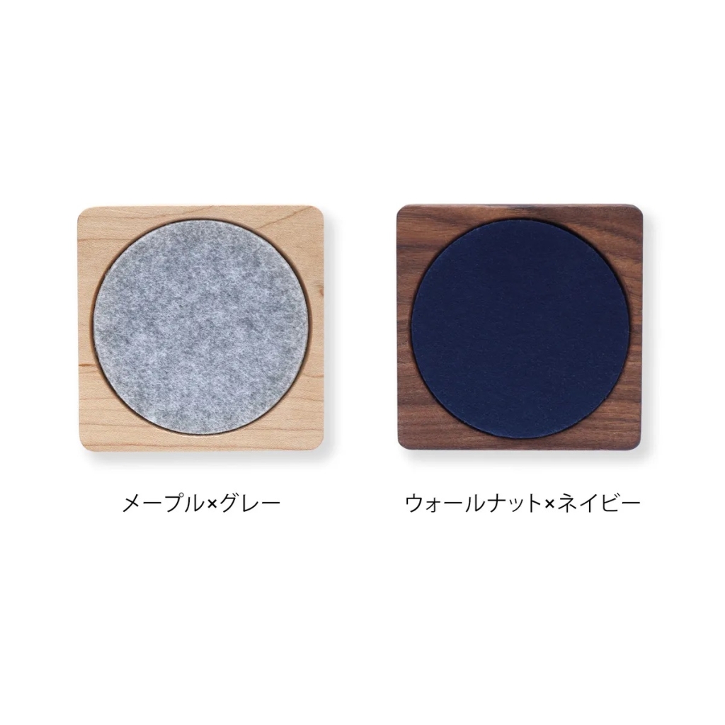 無垢材メープル・ウォールナットに、フェルトを組み合わせた木製コースター。