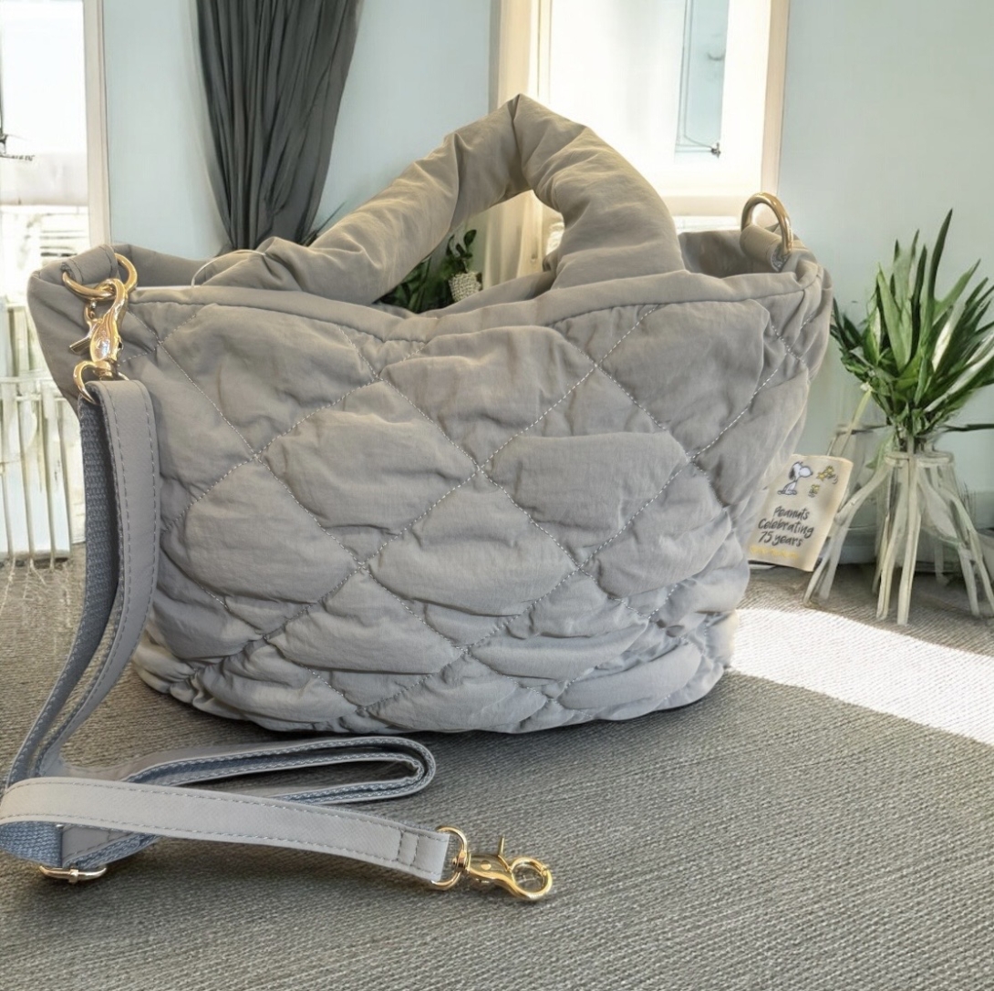 デザインロゴが入ったキルティングバックです♪