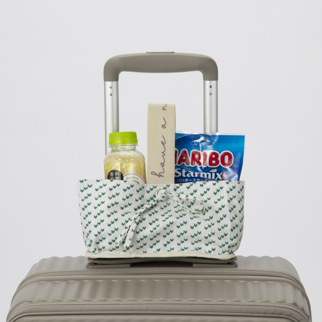 ちょっとした小物入れやドリンクホルダーとして、手がふさがりがちな移動中にスーツケースのハンドルに取り付けたり、取り外して旅先のミニバッグとしてもお使いいただけます。