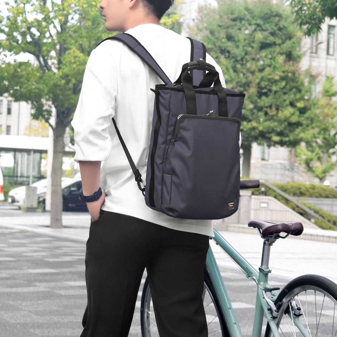 肩ベルトを背面ポケットに収納すれば、手提げバッグとしても使えます。