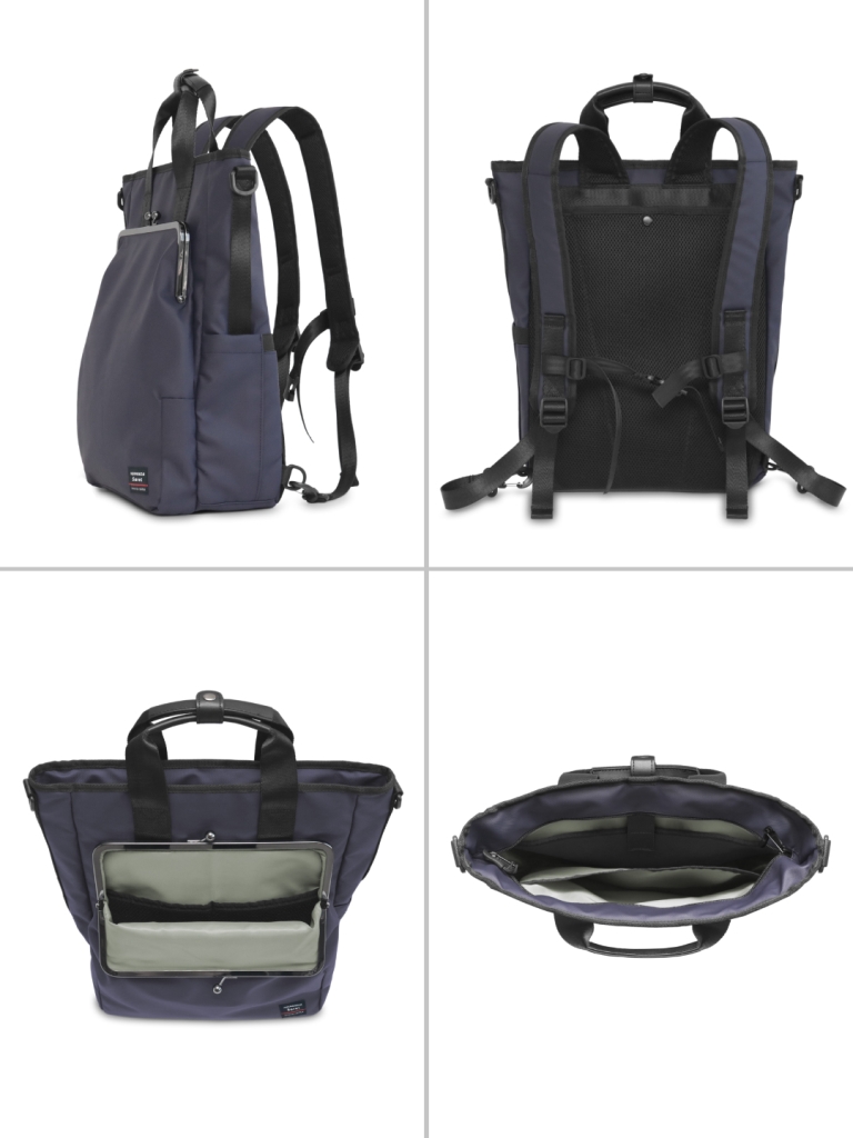※「がま口3WAYアーバンバッグ」「ラウンドがま口アーバンリュック」ともに、背面のポケット状部分の左右下部の角が空いている仕様のため、小さいものを入れると落下する可能性があります。入れるものにはご注意ください。