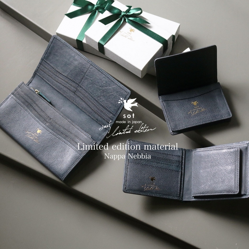 今年のアイテムは伝統的なバケッタ製法で作られるナッパネビアレザーを使用し仕上げた、2種類の財布とカードケースとなっております。