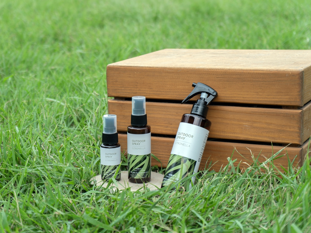 シトロネラやレモンユーカリなどの爽快なハーブブレンドで、海・山・川などのレジャーのおともに最適な香りです