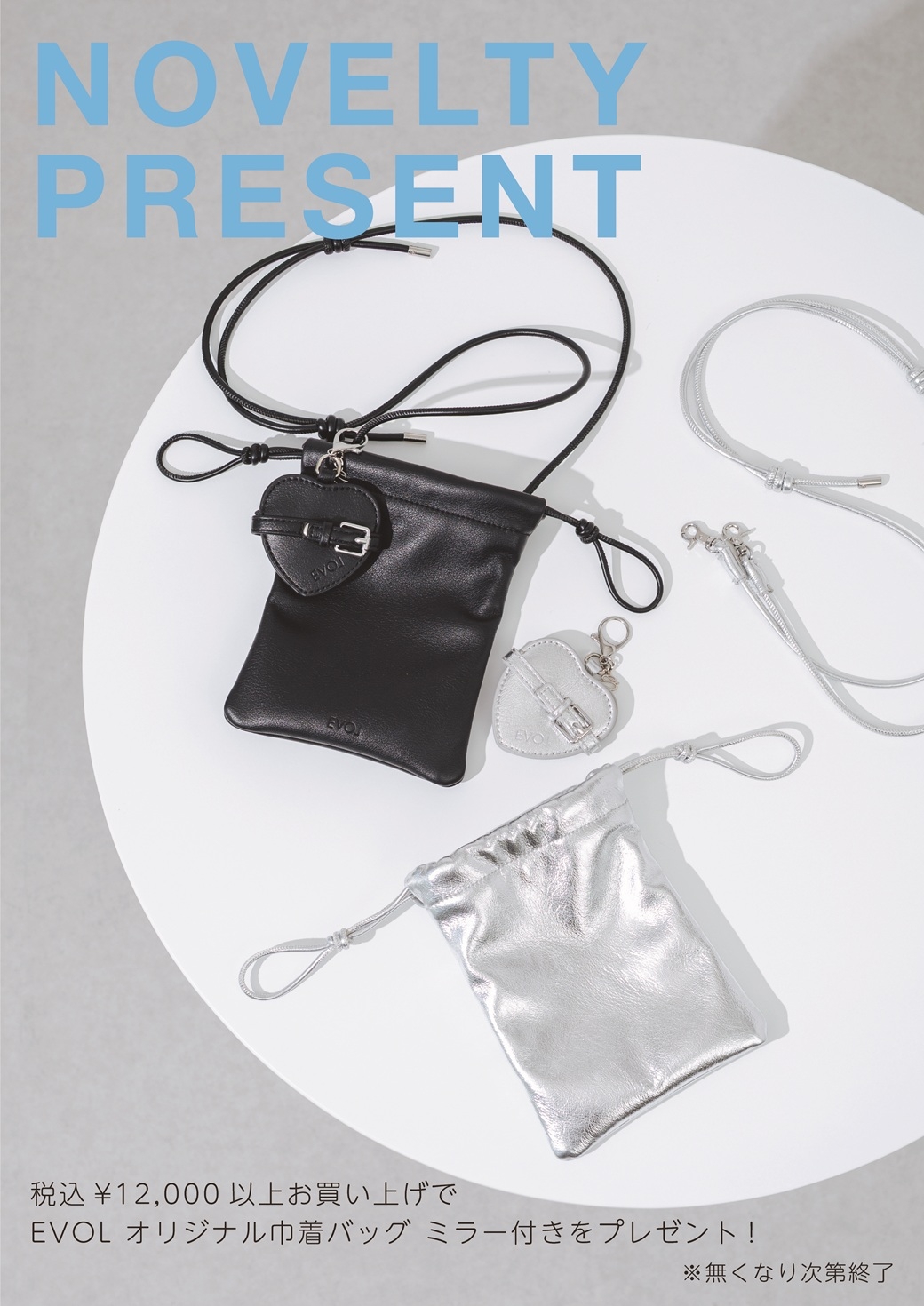 EVOL オリジナル巾着バッグ ミラー付きをプレゼント!